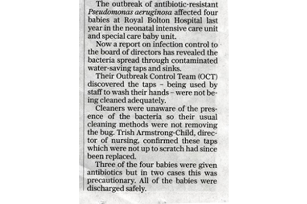 Taps in hospital spread diseases to babies in intensive care